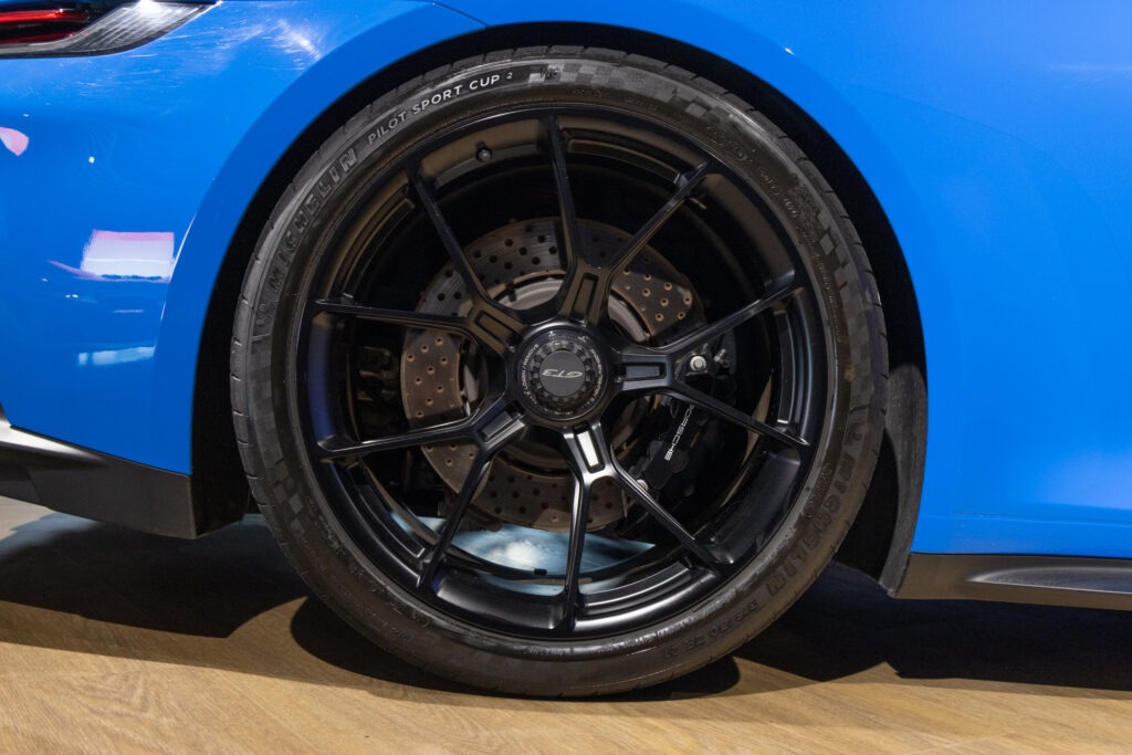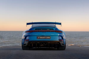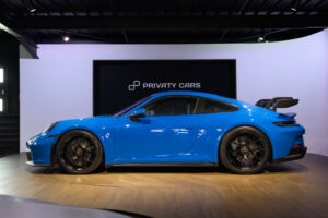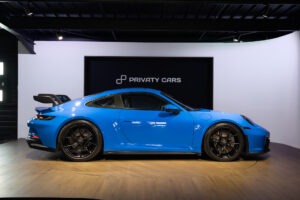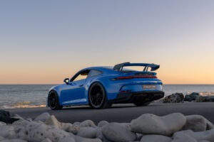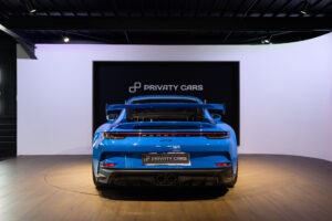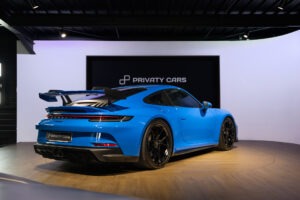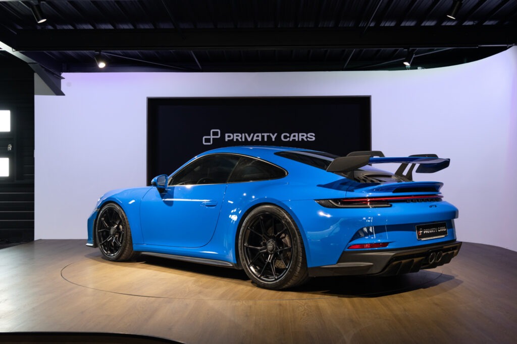 La Porsche 911 (992) GT3 est une déclinaison puriste et affûtée de l’icône de Stuttgart, conçue pour transférer l’adrénaline du circuit sur la route. Animée par un Flat-6 atmosphérique de 510 ch capable de hurler jusqu’à 9 000 tr/min, elle se distingue par son train avant à double triangulation issu de la compétition, son imposant aileron arrière suspendu en « col de cygne » et son châssis d’une précision chirurgicale.